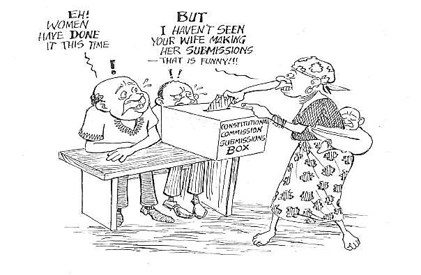 The most obvious victory is that there is no discrimination in any way against women anywhere in the Preamble, the National Objectives, the nineteen chapters and seven schedules of the Constitution. There is only positive 'discrimination' in the form of affirmative action in favour of women. Apart from the provision for affirmative action, every Chapter and provision in the Constitution applies equally to both women and men. "This means that women should never try to concentrate solely on those sections of the constitution which deal exclusively with women, but regard the entire Constitution as guaranteeing them all their dignity, equality, social justice and development." (Waligo J.M. - Arise magazine No.7 1996.)