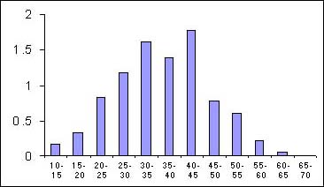 Ö Type 2: Les distributions plus ou moins en cloche (ou en cloche tronquée à gauche) avec un déficit marqué de régénération (ou une régénération faible) et qui traduisent un tempérament de lumière. Ce type est représenté dans notre étude par Anogeissus leiocarpus et Mimusops andongensis.