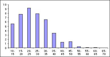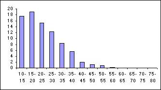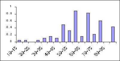 Ainsi, à partir d'un programme écrit dans SAS, nous avons procédé à un comptage systématique des arbres enregistrés dans une classe de diamètre en 1993 et qui passent à des classes de diamètre supérieures en 1998, donc au bout de 5 ans. Ce comptage a permis de calculer les différentes probabilités de passage par classe de diamètre au cours de notre période de projection.