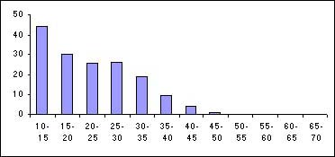 Ö Type 3: Les distributions d'allure exponentielle décroissante à pente plus ou moins forte, dénotant une régénération constante dans le temps et qui traduisent un tempérament d'ombre. Il s'agit notamment ici du Dialium guineense et du Diospyros mespiliformis.