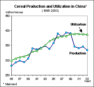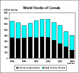 China has been the main contributing factor to the decline in world cereal stocks. Of the overall decline of 288 million tonnes since 1999, China alone accounted for nearly 80 percent. These substantive reductions in cereal stocks have given rise to important questions about China and the world grain economy. Most importantly,for how long can these reductions be sustained, when will they come to an end and what consequences will a continuation of past developments have on both China’s and international cereal markets? It has also given rise to the question of how accurately current information reflects the true market condition.