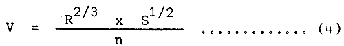 Assuming that the canal has a trapezoidal section the flow velocity is available by Manning's formula shown below: