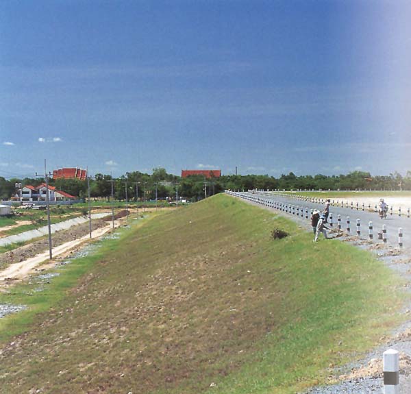 The Royal Irrigation Department decided to protect and preserve this community and its culture by building a dike. Traditions, families and friendships of 167 families in Tha Luang and Nern Tha Luang sub-districts are now physically protected by a dike nearly two kilometres long (1716 m). “The dikes will help these families retain their traditional culture, their families and their friendships,” the RID engineer said.