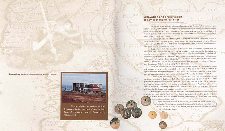 The Pa Sak River Basin Development Project may be Thailand's first national water resource development scheme incorporating comprehensive archaeological conservation. An archaeological recovery and conservation committee and working group conducted a detailed survey and excavations, followed by the systematic collection and careful preservation of the artifacts found.