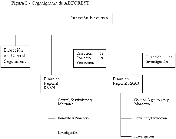 La Ley 290, de Organización y Competencias del Poder Ejecutivo, promulgada en 1998, traslada al Ministerio de Fomento, Industria y Comercio a ADFOREST, definiendo una relación de jerarquía funcional y orgánica con el MIFIC, y manteniendo una autonomía técnica.