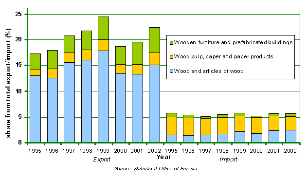 Estonian wood-processing industry is today export oriented, but domestic demand for wood products is slowly increasing. In 2002 export of wood and articles of wood forms 15% from the total value of the Estonian export.