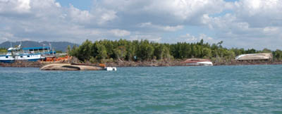 Fig. 25. Serious damage to the mangroves was caused by the boats swept there by the force of the tsunami