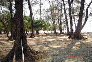 Fig. 32 indicates that a woody stand on a coastal area, especially on sandy beaches that are not suitable for agricultural uses, can act as a buffer zone offering protection to the human communities and infrastructure behind it.
