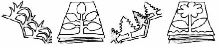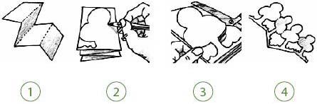 Fold a strip of paper into a concertina. On the top draw a picture of a plant (tree, bush etc.). Make sure you leave a strip at the bottom of the picture so that the pictures will join up. Cut around the plant, then open up the strip.