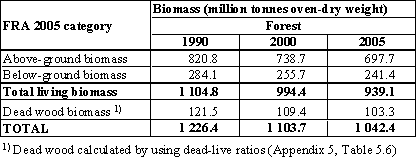 Data on biomass stock of Forest and Other wooded land are included in FRA 2005 since they respond to international reporting requirements for the climate convention and the Kyoto protocol, as well as for development of national policies.
