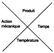 La présence de ces quatre facteurs est indispensable et leur combinaison est variable. Quelle que soit la méthode mise en oeuvre et l'organisation choisie, ils sont toujours présents et la diminution de l'un est toujours compensée par l'augmentation d'un ou de plusieurs des autres.