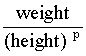 where p is a value, usually between 1.0 and 3.0.