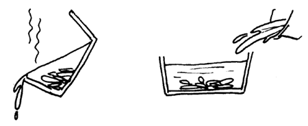 then pour the hot water away, and add cold water to cool down the seeds.