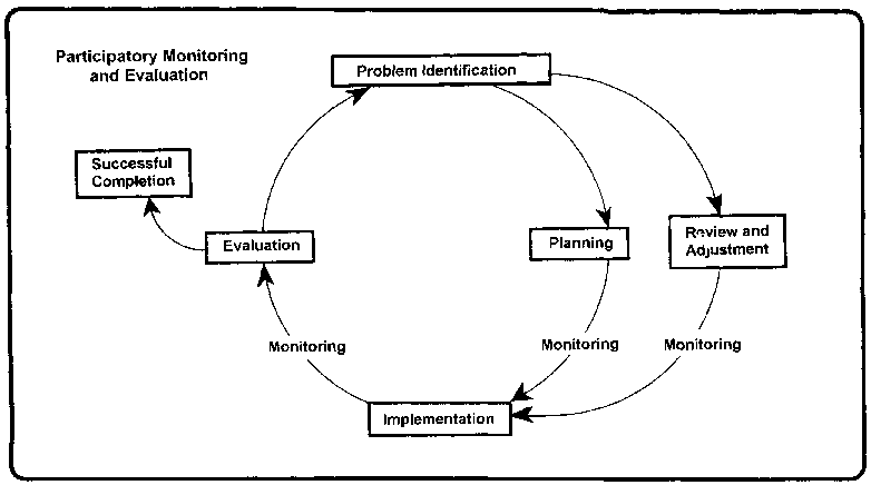 Monitoring and evaluation is an ongoing process built in from the start of the project. In a participatory nutrition project, it is difficult to separate the stages of problem identification, selection of activities and monitoring and evaluation of these activities. Activities increase aware ness, understanding and participation which in turn lead to redefinition of objectives and adjustment of activities or definition of new objectives and selection of new activities.. Monitoring and evaluation provides opportunities for learning from action.
