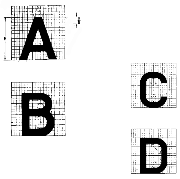 1. the space between letters and/or numbers shall not exceed h/4 nor be less than h/6;