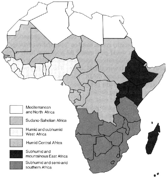 The production potential of land is set by soil and climatic conditions and by the level of inputs and management applied to the land. Crop production can be rain-fed or irrigated and can be maximized by matching the climatic and soil attributes of the land with the climatic and soil requirements of the desired crop. Attempts to grow crops that are not suited to the prevailing ecological conditions will often result in low yields or crop failure, with consequent adverse effects on food security. Figure 13 shows the characteristics of the six major climatic zones of Africa.