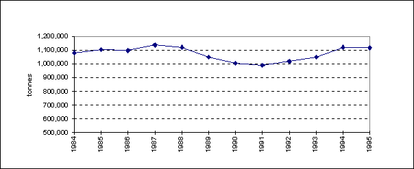 Figure 2. Evolution des captures totales de la pêche en Méditerranée - 1984-95