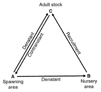 It would be useful to first examine some key concepts in population biology. From the perspective of fisheries assessment, it would be ideal if fisheries could be regarded as harvesting local populations of a single species, where a local population is defined by Sinclair (1987) as `a self-sustaining component of a particular species'. These effectively share a common gene pool and are implicit in the biological species concept of Mayr (1942), which is defined as "groups of actually or potentially interbreeding natural populations, which are reproductively isolated from other such groups" and we may note that this definition is valid for genetically isolated stocks also. Sinclair notes that fisheries scientists (see, for example, Heincke, 1898 and Hjort, 1914) were perhaps the first to recognize that such local groups of organisms were the ideal `working units' for fisheries management, even though, for reasons mentioned later, in relatively few cases are we able to say with certainty that this rigorous version of the `unit stock' concept applies to real-world fisheries. Sinclair also initiated the concept of `population richness' (Fig.2), which is the characteristic of some species as a result of their history and/or geographical discontinuities, to split into smaller self-sustaining local populations. Thus, there is a range of phenomena from single-population species such as the common eel where all Atlantic populations breed in the Sargasso Sea, through typical groundfish species such as cod or shelf pelagics such as herring, of which there are a number of local stocks, to species such as salmon and shad, which may have as many genetically distinct local populations as there are spawning streams. He also noted that reproductive isolation is important but can occur without geographical barriers (e.g. stocks A and B in Fig. 2), especially since, according to the scheme of Harden Jones (1968) in Figure 3, migratory fish may mingle on nursery or feeding grounds.