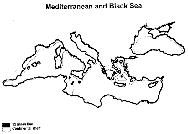 Fig. 4c . Mediterranean shelf areas in relation to a line 12 miles distant from shore