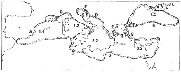 The categorizations in stated in Annex may in some cases provide an indication of stock management units for migratory species, but in others it is not clear how many smaller stock units they include. Before going into further detail in the search for meaningful management units, it may be useful to look first at some general spatial or geographical categorizations commonly used in fisheries and marine ecology. Logically, it would seem important first to briefly review the main geographical features of the Mediterranean water masses to see what they may suggest in terms of standing structures and processes which will affect fish stock distributions.