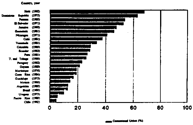 SOURCE: CEPAL/CELADE, 1993: 47. Information based on National Reports of Demographic and Health Surveys.
