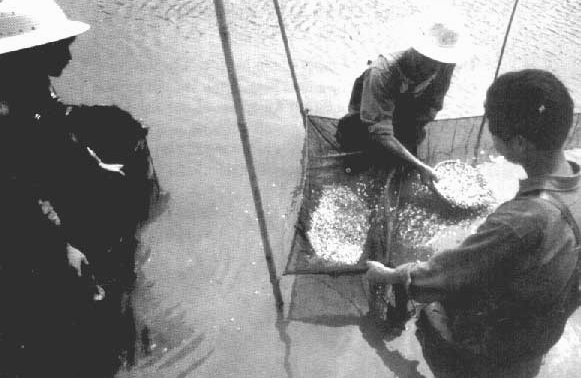 Low-input aquaculture in rural areas is geared to providing food and diversification of income for the rural farmer and his immediate family and is just one of many part-time agricultural activities. The fish maintain their own populations and feed on the natural productivitiy of small ponds supplemented by household vegetable wastes and composts.