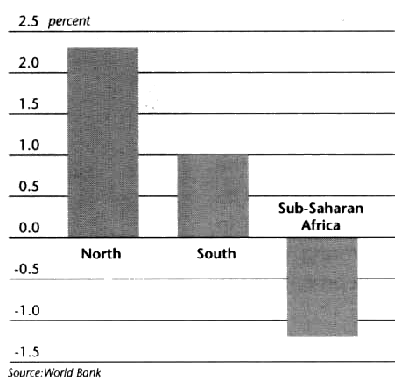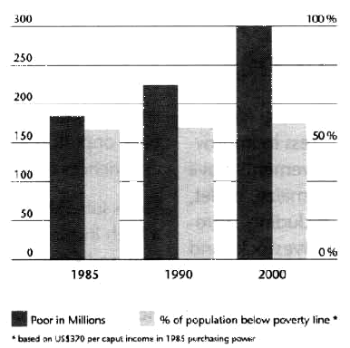 IN SUB-SAHARAN AFRICA, the number of people living in poverty increased from 184 million in 1985 to 216 million in 1990. It is projected to rise to 300 million by the year 2000. SSA is the only region in the world where poverty is expected to increase.