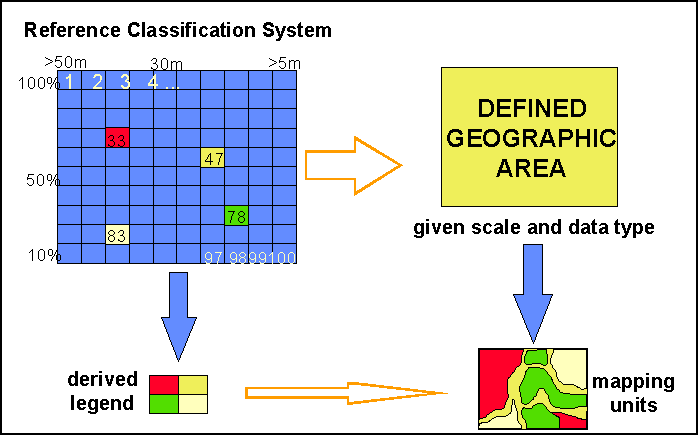 A legend is the application of a classification in a specific area using a defined mapping scale and specific data set (Figure 3). Therefore a legend may contain only a proportion, or sub-set, of all possible classes of the classification. Thus, a legend is: