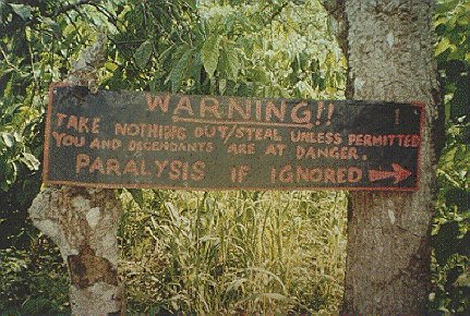 Figure 1: Panneau de signalisation indiquant une parcelle boisée réservée à l'agroforesterie communautaire (Photo: T. Sunderland).