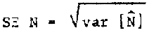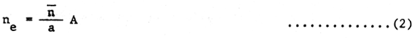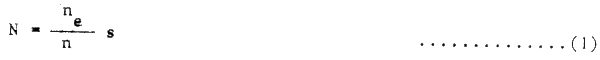 donde N = número de peces del cardúmen de desovadores, ne = número de huevos encontrados en la zona estudiada, n = fecundidad media de las hembras, y s = proporción de los sexos, y: