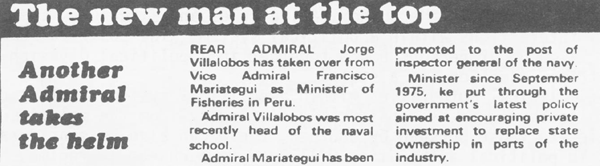 Pescaperu…lost part of the market when an inexperienced marketing team came in with the new government last year (1980). ‘They broke contact with socialist countries, which were big buyers’…There is a new team now with revised approaches. But they have to recover lost ground.