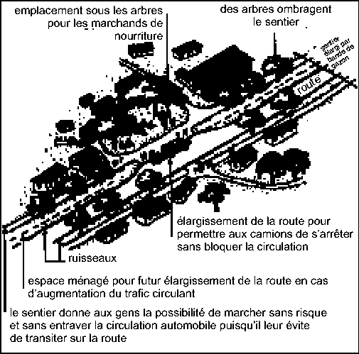 Figure 13 Amélioration d'un point de vente de produits agricoles au bord d'une route de campagne, avec espaces aménagés pour accueillir les vendeurs de babioles et garer les véhicules