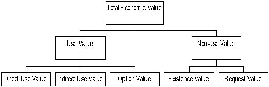 After definition mentioned above, it is understood that the TEV concept is sum of the values, which a natural resource will be able to have. This concept was popularized by David Pearce (Perman et al., 1995). As the TEV concept is a sum of values, there are some components of the sum.