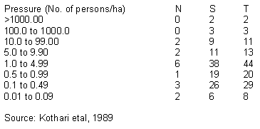 This survey also found out the huge population pressure in the areas adjacent to parks and sanctuaries, which was estimated is shown in Table 2 below.