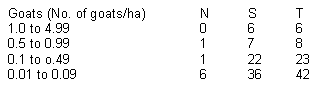 Density of goats for India as a whole was roughly 0.30/ha, given the 1982 figure of 95 million goats in India. Source: Kothari etal, 1989