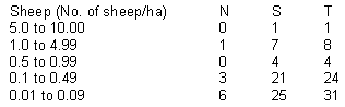Table 3C shows the Density of sheep in National Parks/Sanctuaries