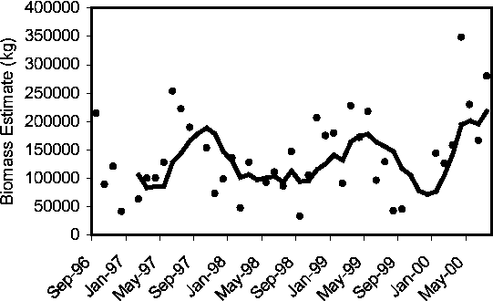 The stocks were exploited (in 1998) at the highest levels of fishing mortality relative to the entire study period. The abundance of the stock decreased considerably from the maximum levels observed from the late 1980s through the early 1990s and recruitment had decreased in the late 1990s. Fishing effort, on the other hand, has remained constant during those years. These conditions are, therefore, indicative of a full exploitation status of the resource.