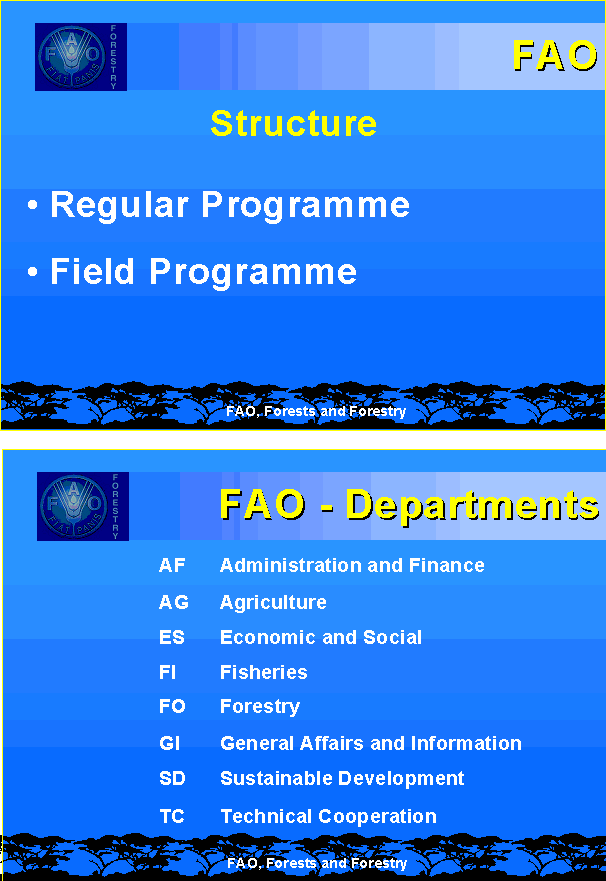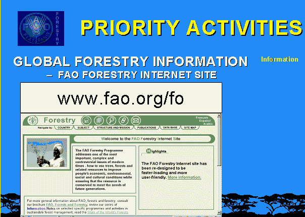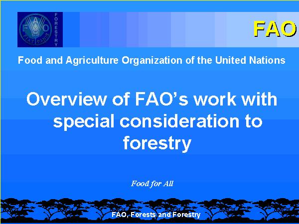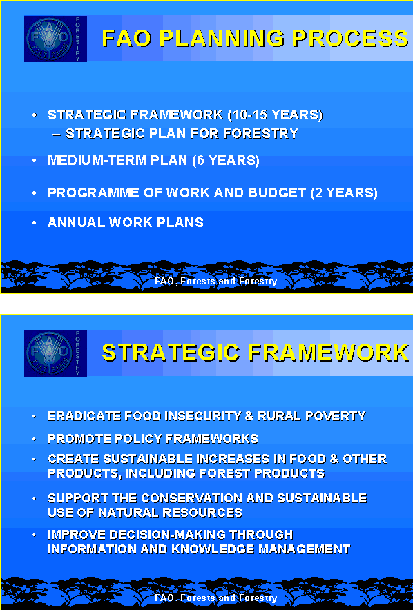 4 For a more accurate and complete description of FAO's role and key activities in forestry, see: FAO Strategic Plan for Forestry, available from FAO, Rome and, on-line, at: www.fao.org/forestry/fo/strategy/vision-e.stm and the FAO Strategic Framework, adopted by the FAO Council in November 1999- see:www.fao.org/strategicframework/