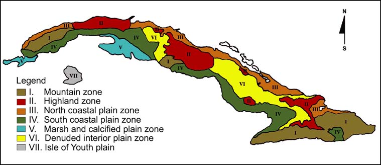 Cuba is 1 250 km long and its width ranges from 32 km at its narrowest point, to 210 km at its widest. It is montainous in the southeast and south-central area, and flat or rolling elsewhere. Total land area is 110 922 km2. The country is divided into seven agro-ecological zones. A soil map of Cuba is given in Figure 1.