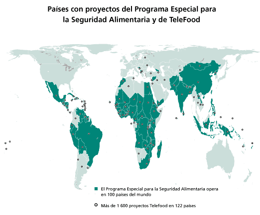 - El Programa Especial para la Seguridad Alimentaria (PESA) tiene por objeto mejorar la seguridad alimentaria familiar y nacional, principalmente en los países de bajos ingresos y con déficit de alimentos, ayudando a los agricultores en pequeña escala a incrementar su productividad y sus ingresos, asegurando de este modo un acceso más estable a los alimentos. A marzo de 2004, el Programa estaba funcionando en 100 países y había movilizado una financiación de 688 millones de dólares EE.UU. frente a 3,5 millones de dólares EE.UU en 1994. Las actividades del PESA se han reforzado ulteriormente con la iniciativa de Cooperación Sur-Sur de la FAO que prevé la contratación de expertos y técnicos de países en desarrollo por dos o tres años en países beneficiarios del PESA. A marzo de 2004, se habían firmado más de 28 acuerdos de Cooperación Sur-Sur entre países, que han movilizado a 2 800 expertos y técnicos para trabajar en actividades del PESA. Otros 15 acuerdos se encuentran en proceso de formulación. En la primera fase del PESA, se ejecutan proyectos piloto relacionados con el control de los recursos hídricos mediante sistemas de recogida de aguas en pequeña escala y sistemas de riego y drenaje; intensificación de la producción de cultivos; diversificación de actividades con producción animal de ciclo corto, la pesca y acuicultura artesanal y la identificación de limitaciones de orden socioeconómico a la producción, al comercio y al acceso a los alimentos. En una segunda fase, el Programa se centra en las cuestiones macroeconómicas: la formulación y adopción de políticas agrícolas adecuadas que favorezcan unas condiciones propicias para el desarrollo del sector, planes de inversión que hagan frente a las limitaciones físicas e infraestructurales, y estudios de factibilidad de proyectos financiables con objeto de recabar más financiación.