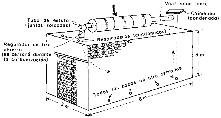 Véase FAO: La carbonización de la madera en hornos transportables e instalaciones fijas, Roma, 1956.