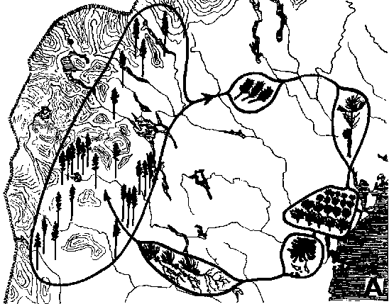 FIGURE 21. - The procedure used to form clonal seed orchards in Sweden. A. Twenty-five high elevation plus trees between latitudes 62 and 64° North are selected and grafted. The grafts are planted in a seed orchard on the coast. The seeds from the orchard give seedlings for planting in the interior.