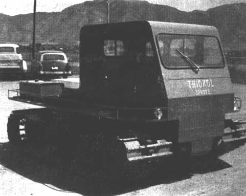 Tracteur à chenilles Spryte. - Cet engin est capable de traîner de lourdes charges dans la neige poudreuse, la boue, en grimpant ou descendant des pentes abruptes pouvant atteindre 45°. Le modèle 201 a les caractéristiques suivantes: possibilités de charge, 3 passagers et 1 500 lb (680 kg) de charge. Poids du véhicule: 2 600 lb (1179 kg); pression des chenilles avec 3 passagers plus 680 kg de charge: 1,11 lb./sq.in. (78 g/cm²).