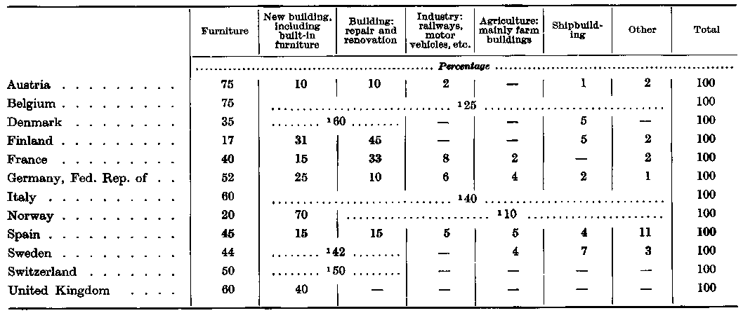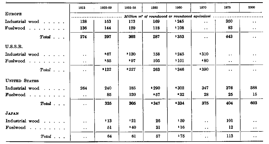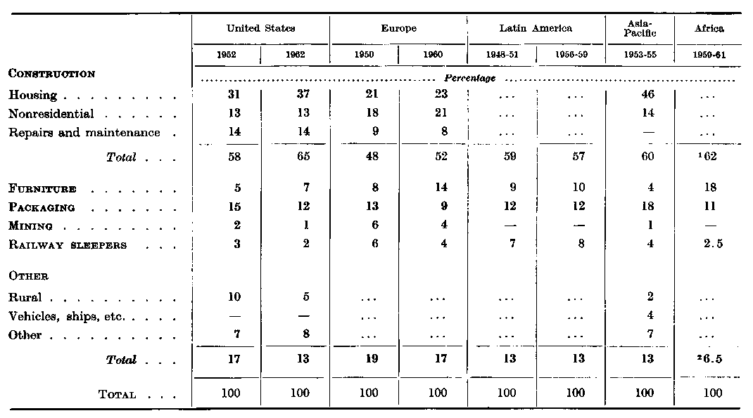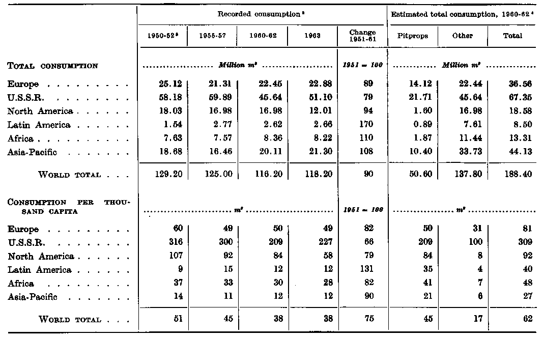 ¹ Figures for 1960-62 are estimated average total annual consumption. Where recorded consumption is significantly different it is shown in brackets. For an explanation of the differences, see the Appendix. - ² Refers to growth in recorded consumption. - ³ Excluding sliced and peeled wood used for packaging.