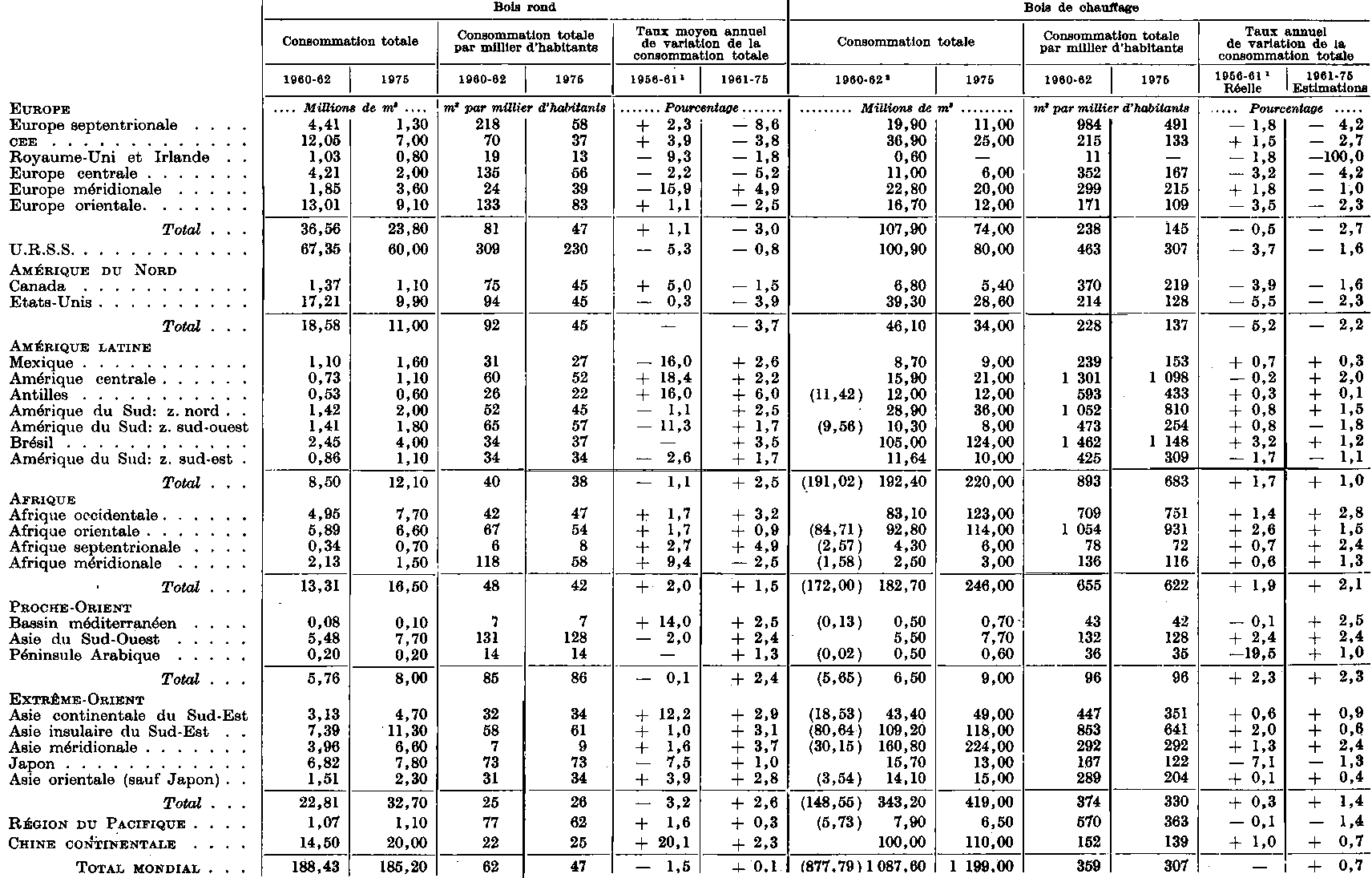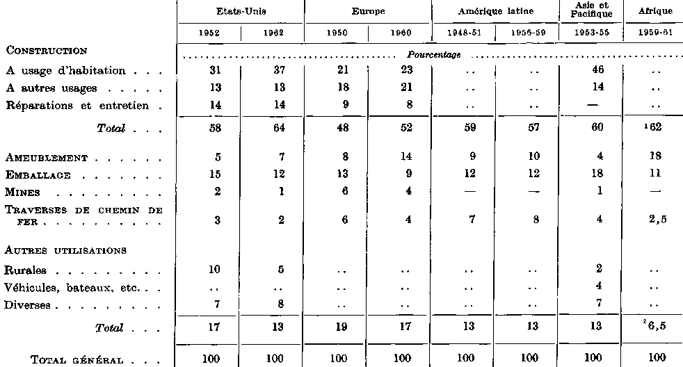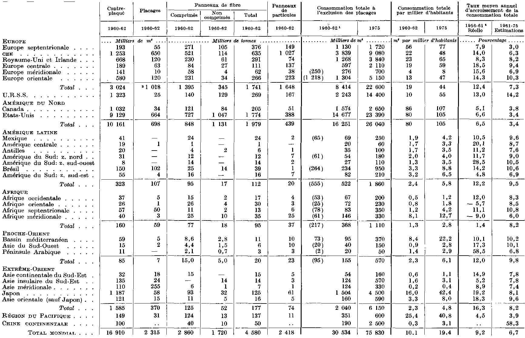 3 Dans cette région, un pourcentage considérable de la consommation de sciages est importé sous forme de bois manufacturé. Il ne figure pas dans les chiffres de 1960-62, mais il en a été tenu compte dans les estimations pour 1975.