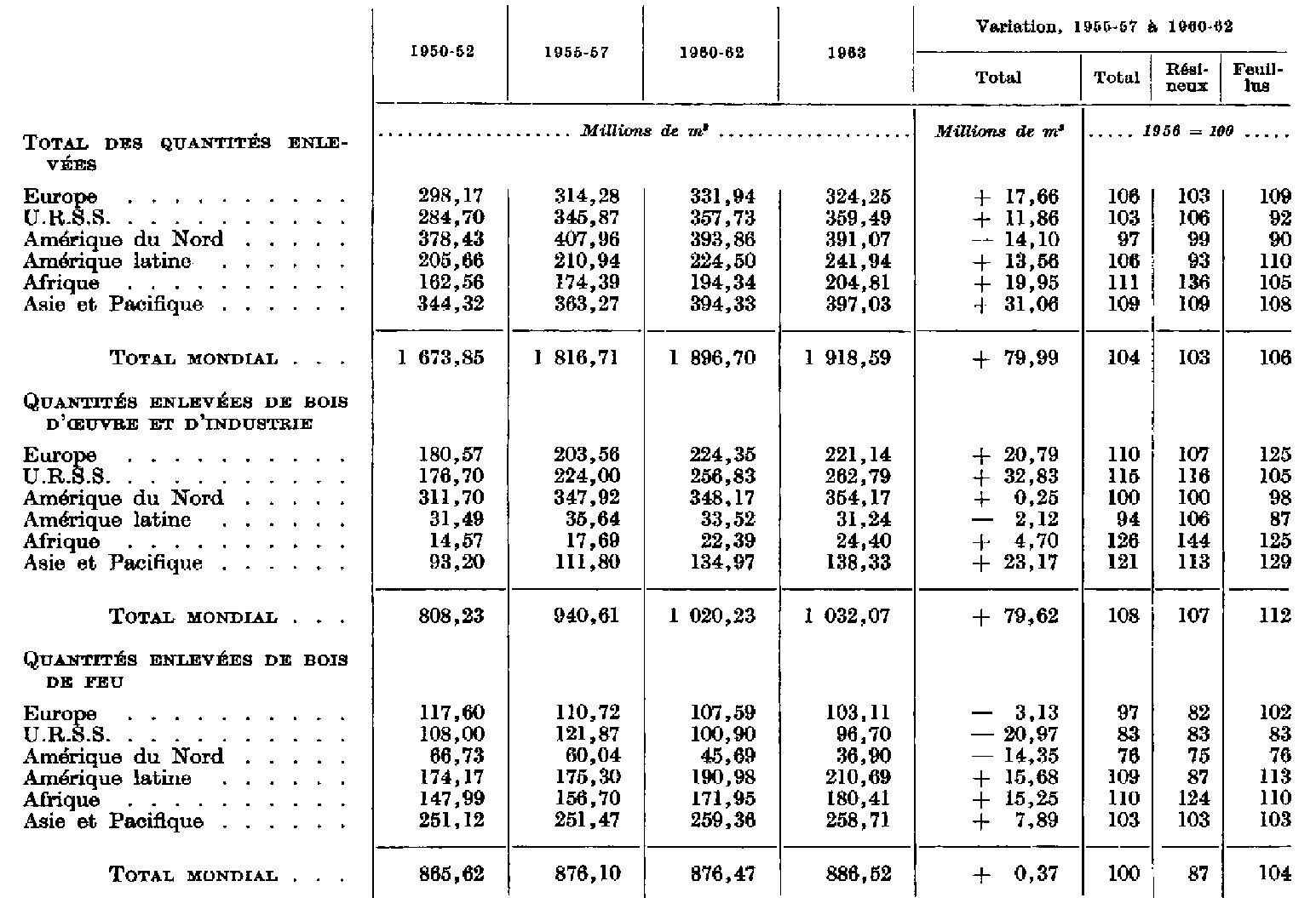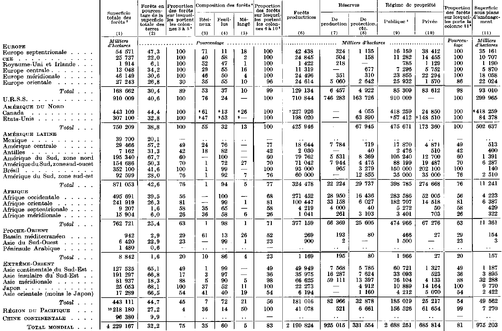 1 Les chiffres contenus dans le tableau sont ceux qui ont été communiqués à la FAO pour l'inventaire forestier mondial, 1963. On doit noter que ces chiffres ne sont pas tous parfaitement comparables, car ils présentent des différences de contenu et de définitions.2 Là où on ne dispose pas encore des chiffres Pour 1963, on a repris les chiffres de l'inventaire forestier mondial, 1958 de la FAO.