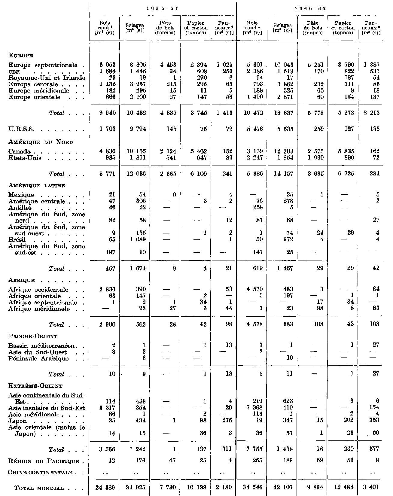 TABLEAU V-1. - EXPORTATIONS MONDIALES DE BOIS ET DE PRODUITS DU BOIS, 1960-62