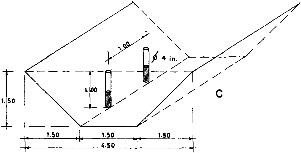 In Surinam, the post-hole method was used to advantage when it was necessary to extend the ditch through higher, relatively dry sections of the swamp. Holes are dug with spades, punched with heavy sticks or drilled with soil augers. The loads are usually made up in part of 5-lb RC cartridges, each accompanied by at least 1 stick of DD to ensure detonation.