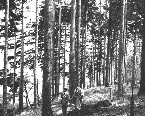 A problem facing most woodland owners in the area was brought about by the last war. Due to compulsory fellings, sold under a controlled price system at values as low as one third of the world price levels, many private owners failed to recoup the capital element when selling their timber. The financial situation was subsequently aggravated by the fact that the postwar shortage of labor and plants delayed the replanting of war fellings, and planting began when labor costs, which at the time accounted for about 80 percent of the cost of planting, were twice the mid-war level. The Government made some effort to return the capital, but the grant offered represented only about one quarter of the cost of large plantings and less than one tenth of the cost of very small schemes. Replanting of war fellings has therefore been chiefly financed from current fellings or, if no mature timber remained, with capital from nonwoodland sources. Because of this only very few woodland properties have yielded any income during the postwar years.