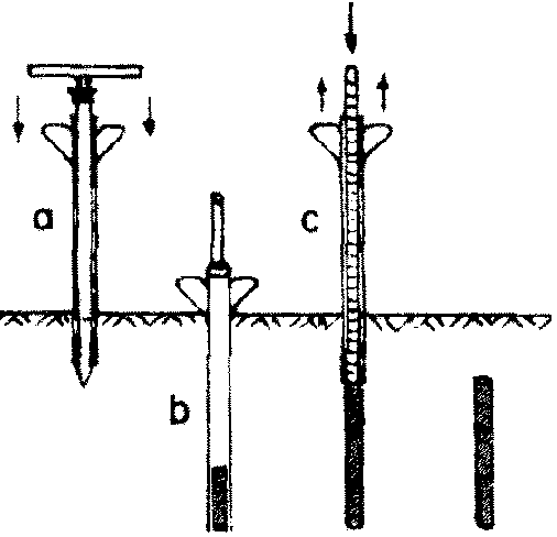 FIGURE 4. - Schéma de l'opération - a. creusement - b. chargement - c. bourrage.
